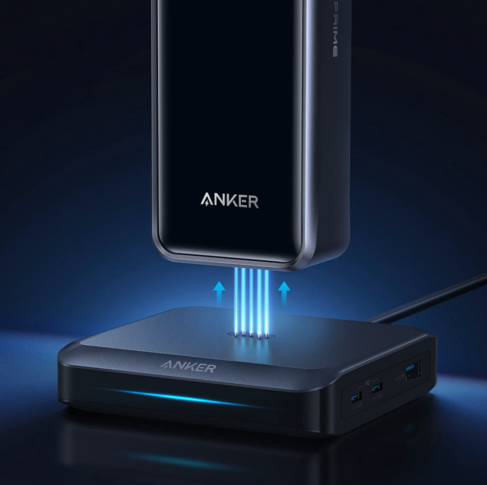 앵커 프라임 파워뱅크 시리즈의 가장 큰 차별점은 바로 전용 충전 스테이션(Charging Base)입니다. 단순히 용량이 큰 배터리를 넘어, 충전 방식 자체를 혁신적으로 바꿨습니다.